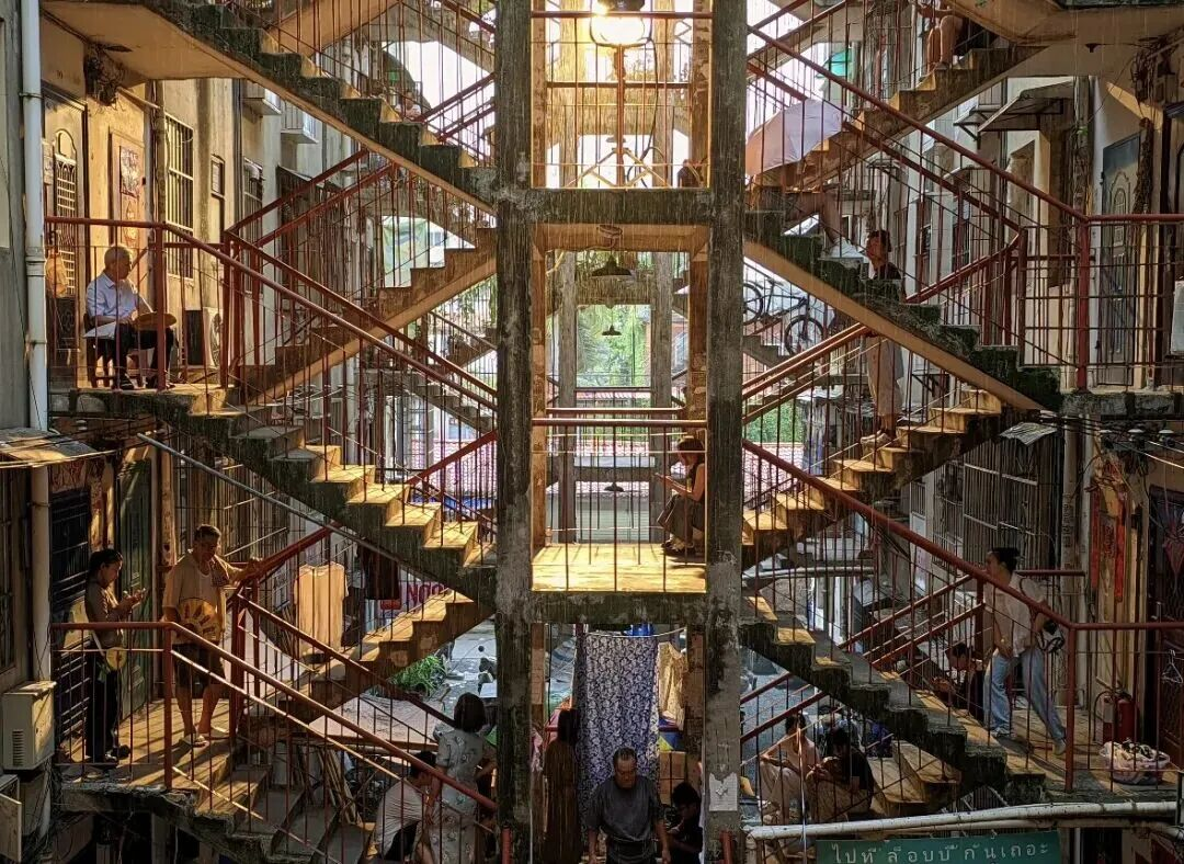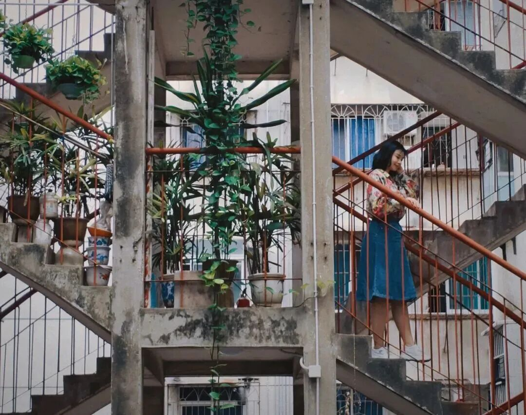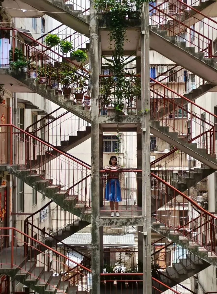 斑驳的水泥墙体,阡陌交错的电线,边缘坑洼的楼梯,锈迹斑斑的扶手,无一不透露着历史的沧桑感。结构别致,错落大方,在复古滤镜的加持下,就是天然的怀旧摄影棚,随手一拍都是大片,也让它成为了热门的打卡地点。