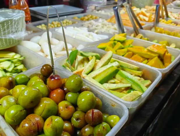 各种水果和蔬菜泡成酸味食物,加上辣椒粉、白糖等配料,呈现出一种酸甜辣咸巧妙融合的独特味道。酸嘢脆爽可口,生津开胃,每一口都是对味蕾的极致诱惑。