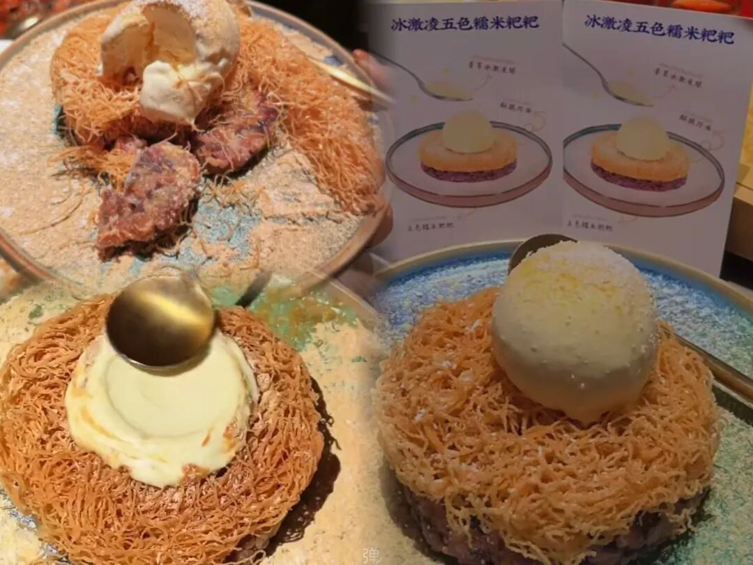 灵感来自壮族五色糯米饭,软糯的糯米皮,包裹着冰凉的冰淇淋内馅,是一道颜值与口味并存的特色甜品。
