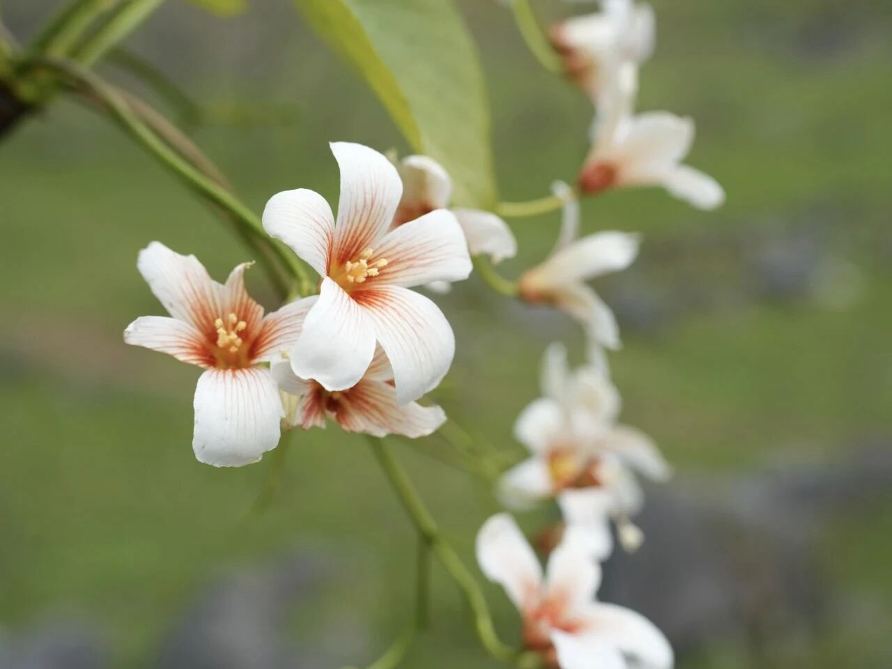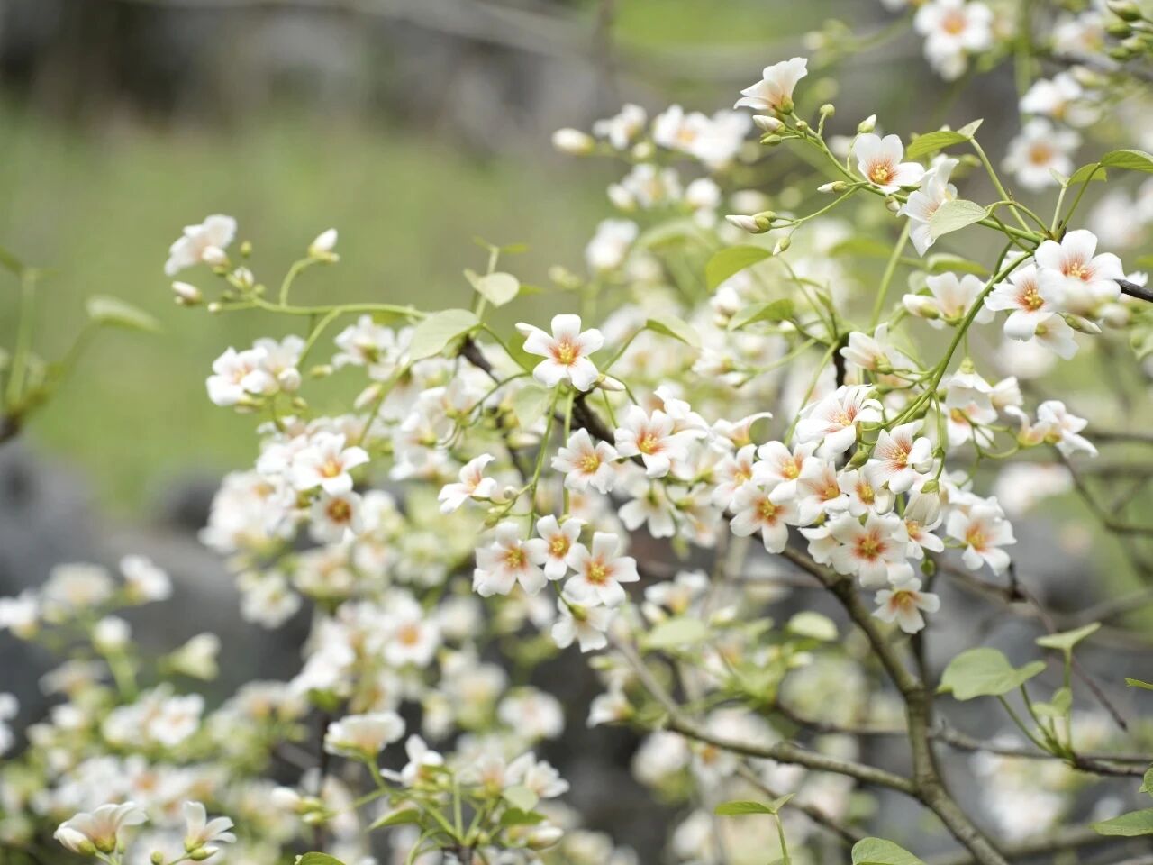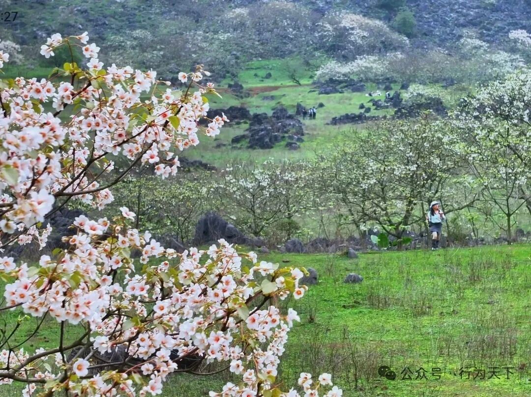远观漫山遍野的雪白顺着山势起伏,与青翠山峦、嶙峋怪石相映,恰似大自然打翻了奶油调色盘,为青山披上一层轻柔薄雪;近赏,五片花瓣舒展,花心晕着淡淡粉褐,微风拂过,花瓣簌簌飘落,铺就一条浪漫花径,淡淡的清香萦绕鼻尖,清新治愈,让人心旷神怡。