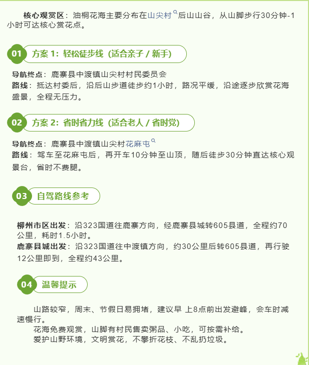 来山尖村赏花,还能串联中渡镇精华景点,一站式感受鹿寨的自然与人文魅力: