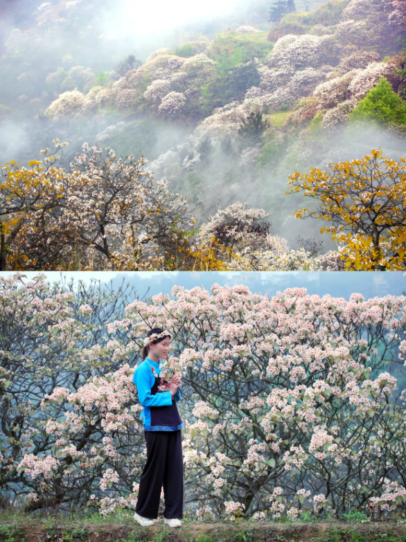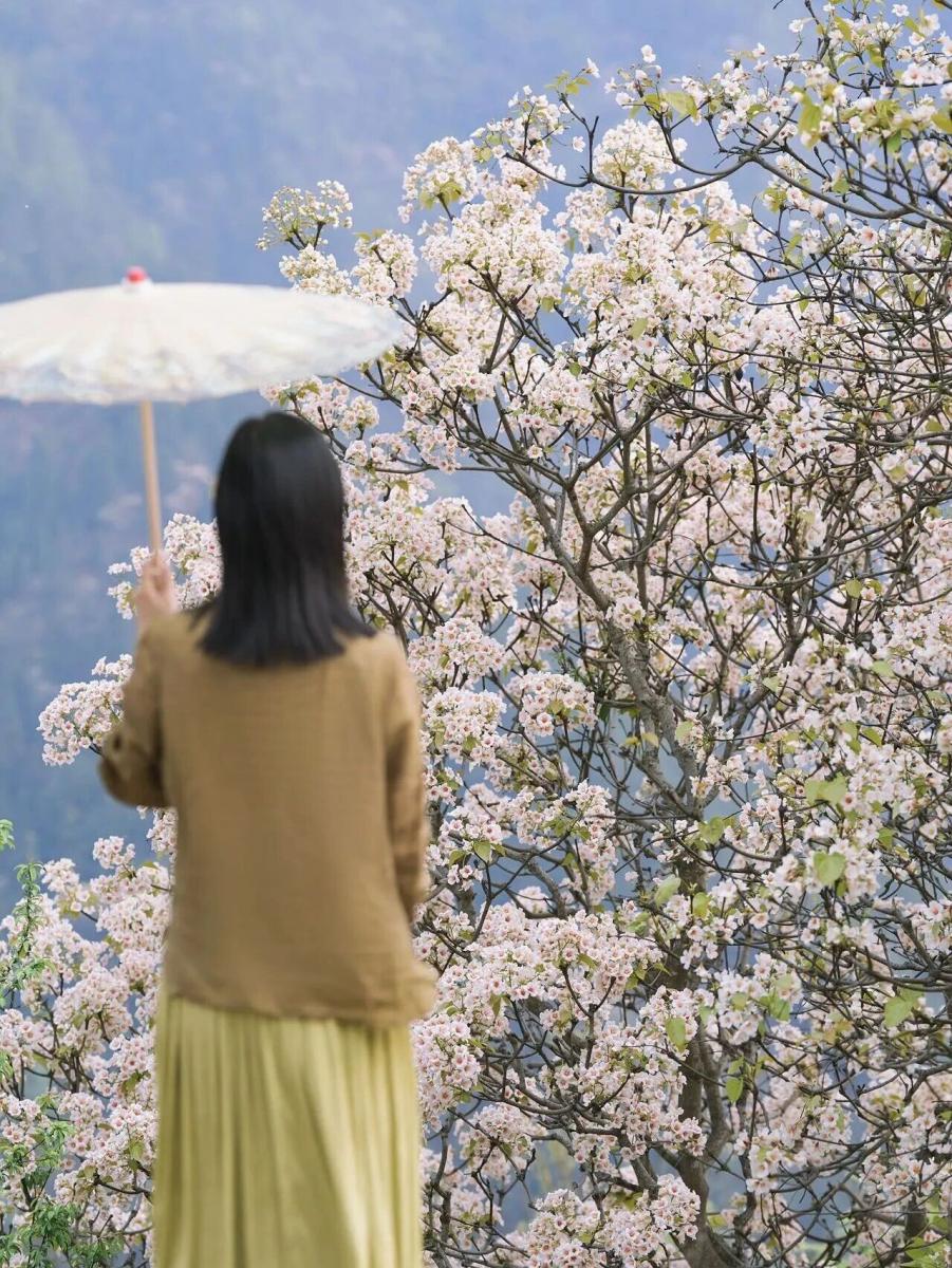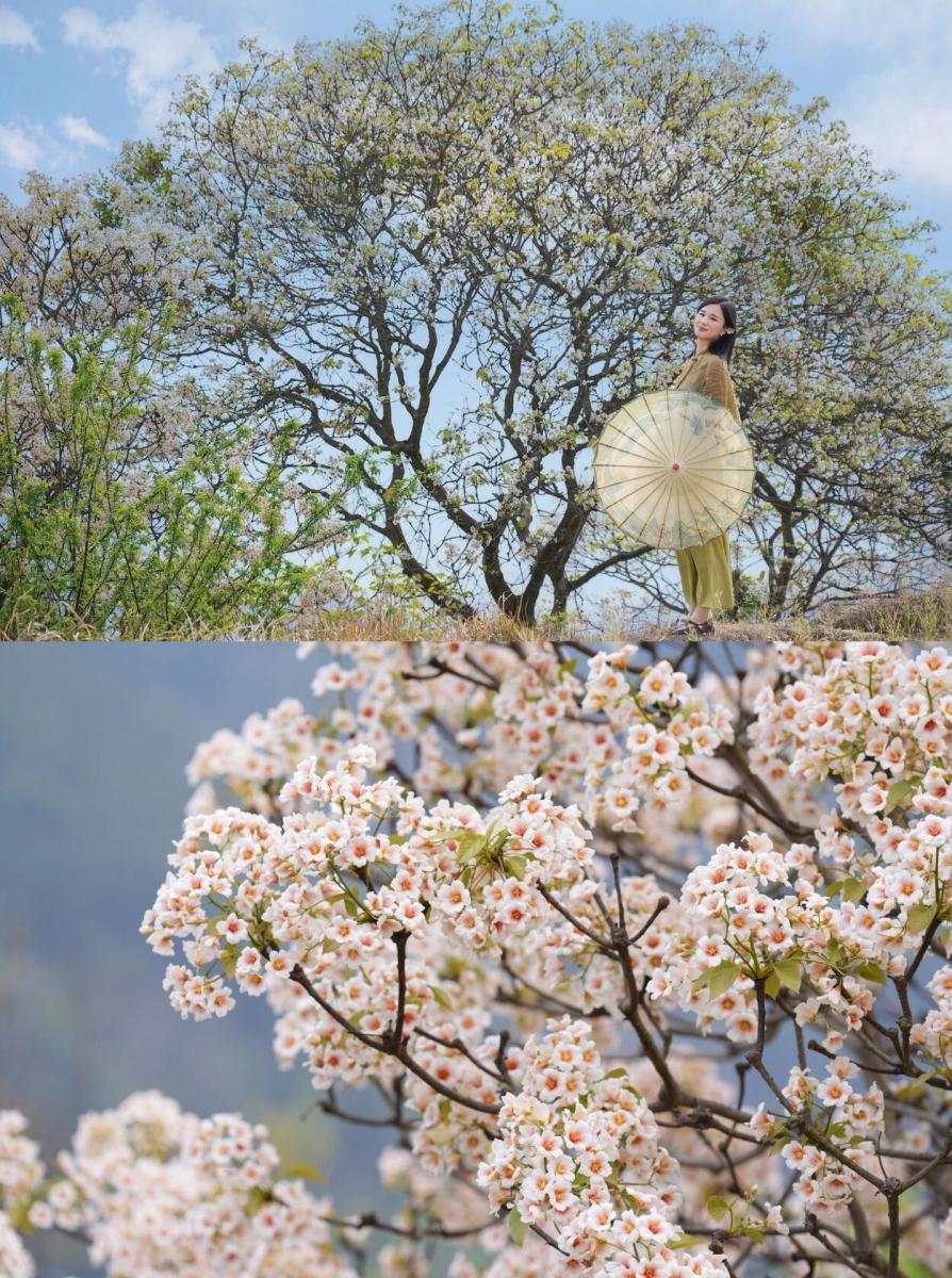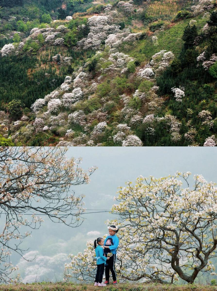 花期3月下旬-4月上旬(三月三前后盛花,低海拔先开、高海拔后开,整体花期约1个月);清晨6:00-8:00看花山云海,午后至傍晚看桐花飞雪,光线柔和适合拍照。