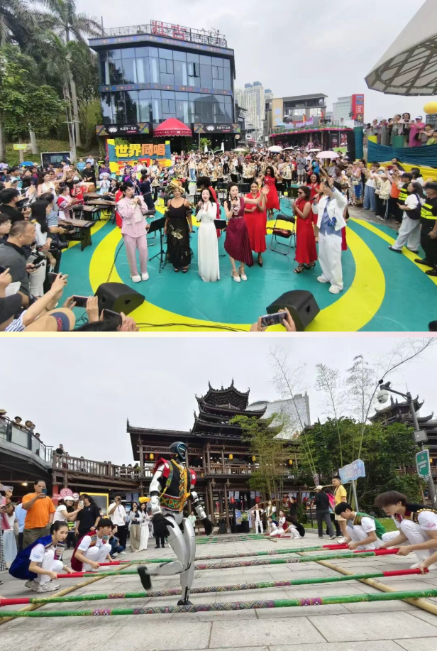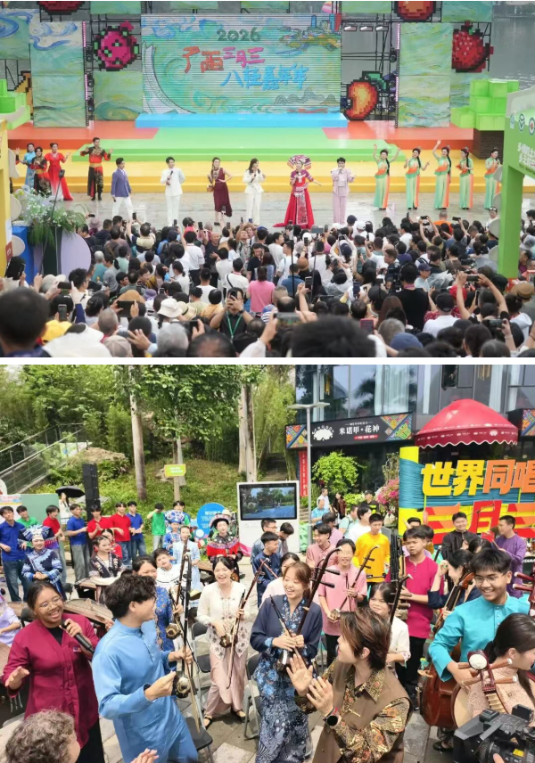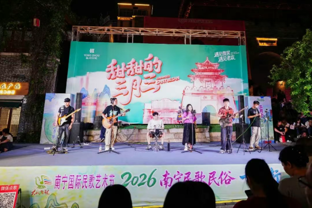 作为中国—东盟合作的前沿窗口,南宁的“三月三”洋溢着国际色彩。开幕式“世界同唱•三月三”单元特邀巴西、丹麦以及越南、马来西亚等东盟国家乐队,与广西民族歌队、机器人乐队同台演绎,串烧演唱各国特色民歌。邕州古城中山路、青秀山等地搭建的“绿城歌台”邀请东盟优秀演出团队,实行全天候分时段展演,让市民游客足不出桂即可感受中外交融的快乐。