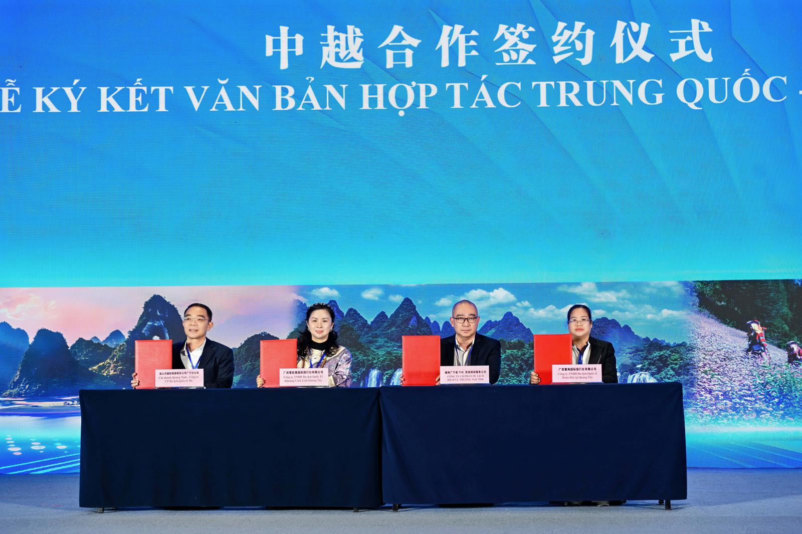 为推动合作切实落地,推介会现场举行了中越合作签约仪式。广西零距离国际旅行社有限公司、广西寰海国际旅行社有限公司分别与越南湄公河国际旅游股份公司广宁分公司、越南广宁省THK 贸易旅游服务公司签署文化旅游合作备忘录,内容涵盖市场推广、客源互送、线路共研、联合营销等领域,助推双方企业合作进入项目化、实质化推进的新阶段。