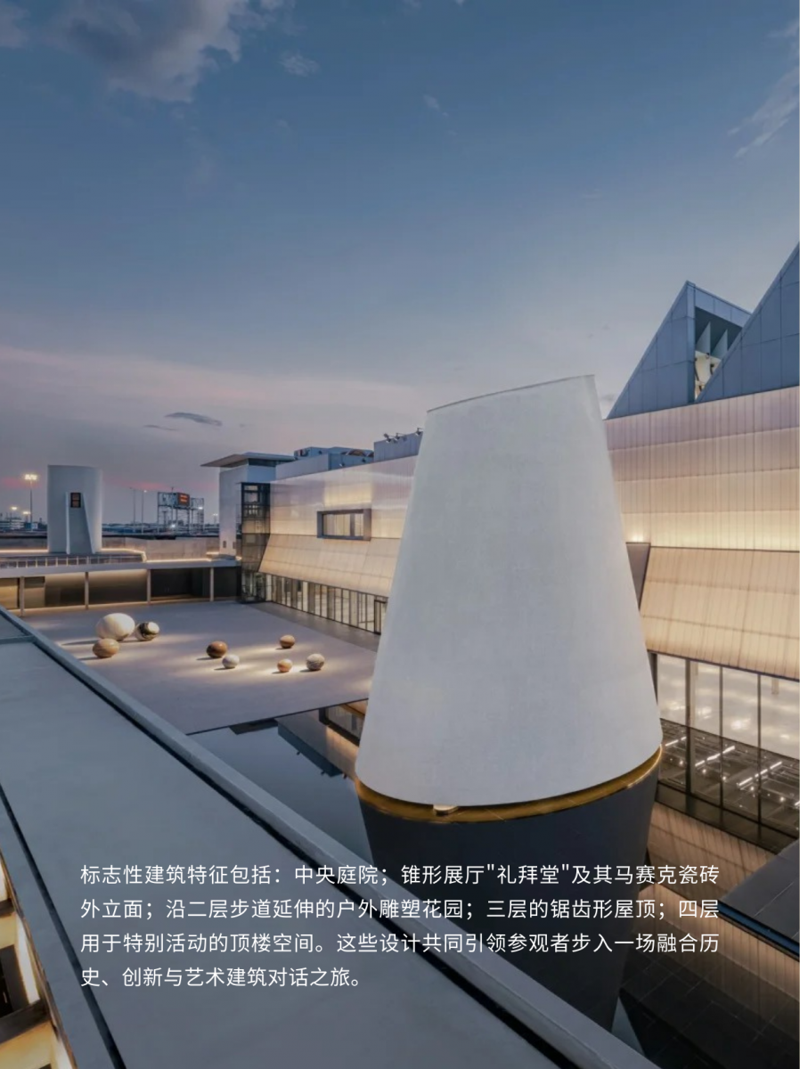 ▫️标志性的锥形“礼拜堂”展厅和屋顶锯齿天窗,光线绝美!