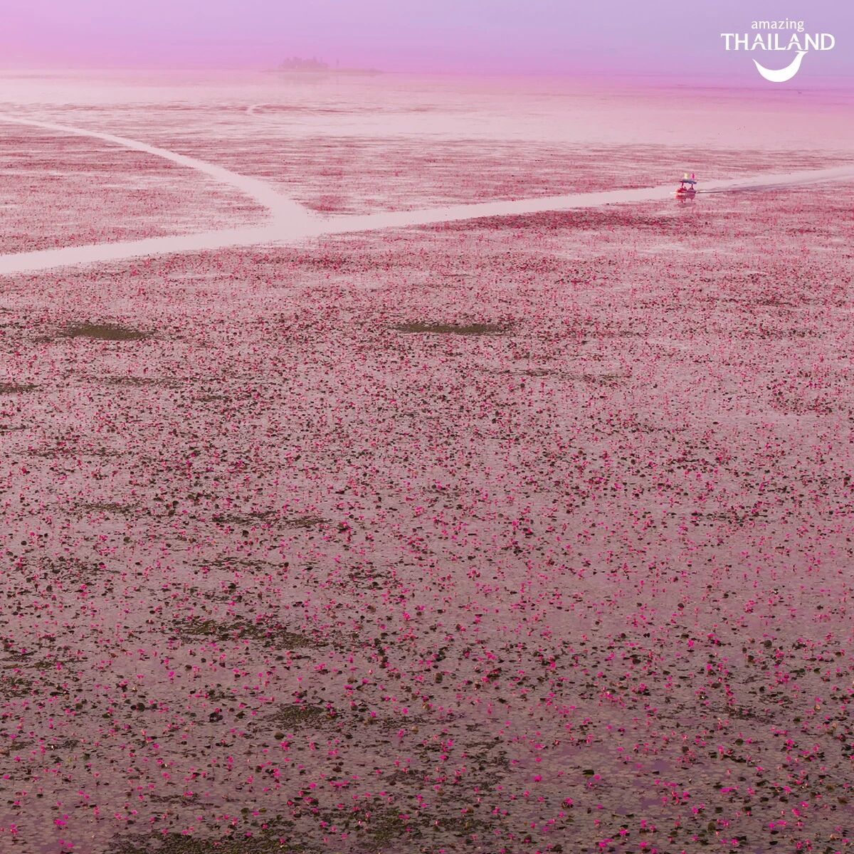 不瞒你,小编看到图1整个人都被震撼到说不出话来这片花海壮观到:首图不想加任何文字说明!任何去修饰它的美的文字,感觉都是画蛇添足。怎么说呢?摄影师确实牛,但这景象,图1就是你现场看到后会被震惊到无以言表的画面。很想问一句:这个世界上,还有比这更壮观的莲花海吗?“当第一道晨光轻轻呼唤乌隆他尼的红莲海一整片粉色在水面慢慢醒来小船轻轻划过水面泛起微光世界安静下来只剩下呼吸与心跳这一刻不需要语言美与情绪自然流动。”很庆幸,泰国#乌隆府 有#红莲湖 这等世界奇观。现在去,正是时候!