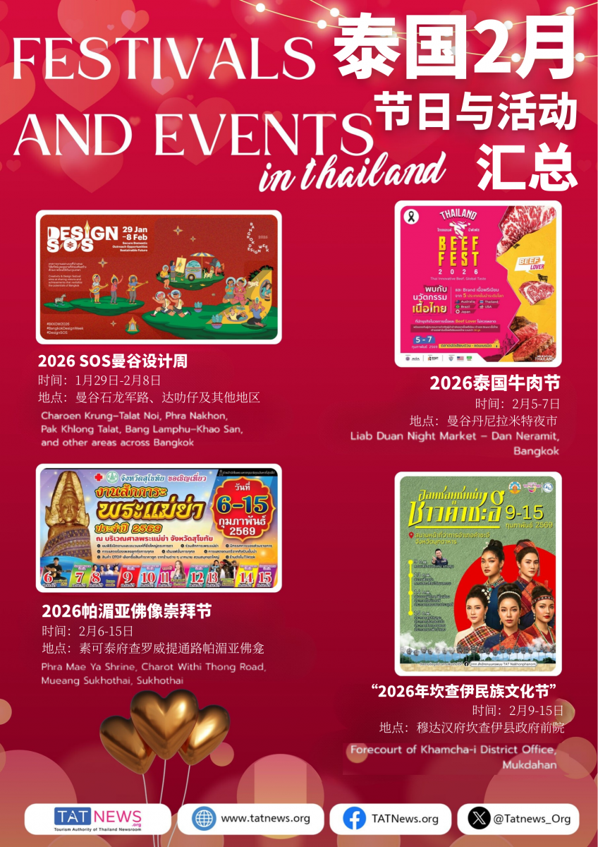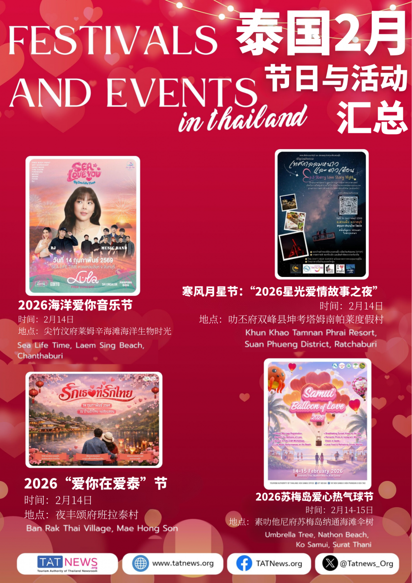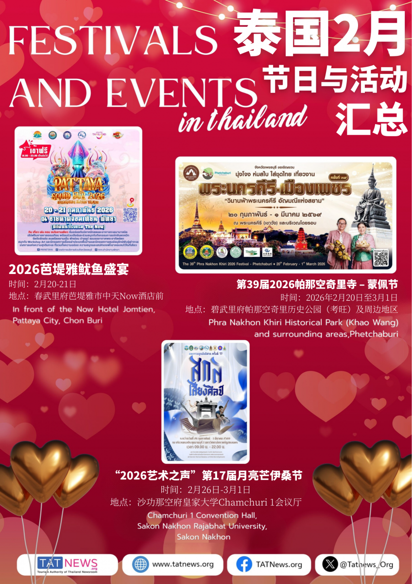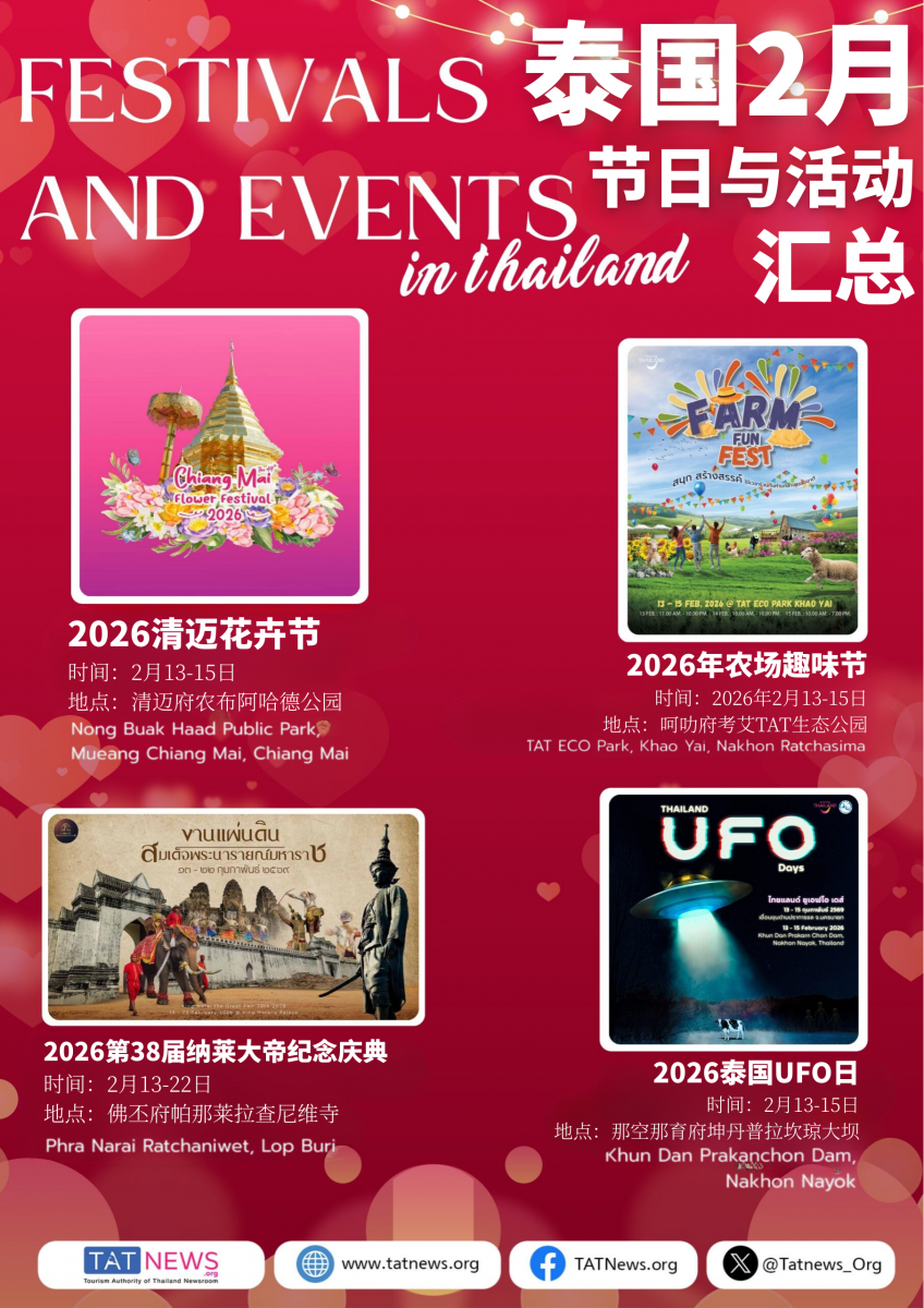 2月份去泰国玩的铁铁们看过来!情人节将至,2026年2月的泰国充满浪漫,既有创意碰撞,又有传统韵味!总共19个节日和庆典每一个都好戳人,逛吃玩拍一站式打卡!