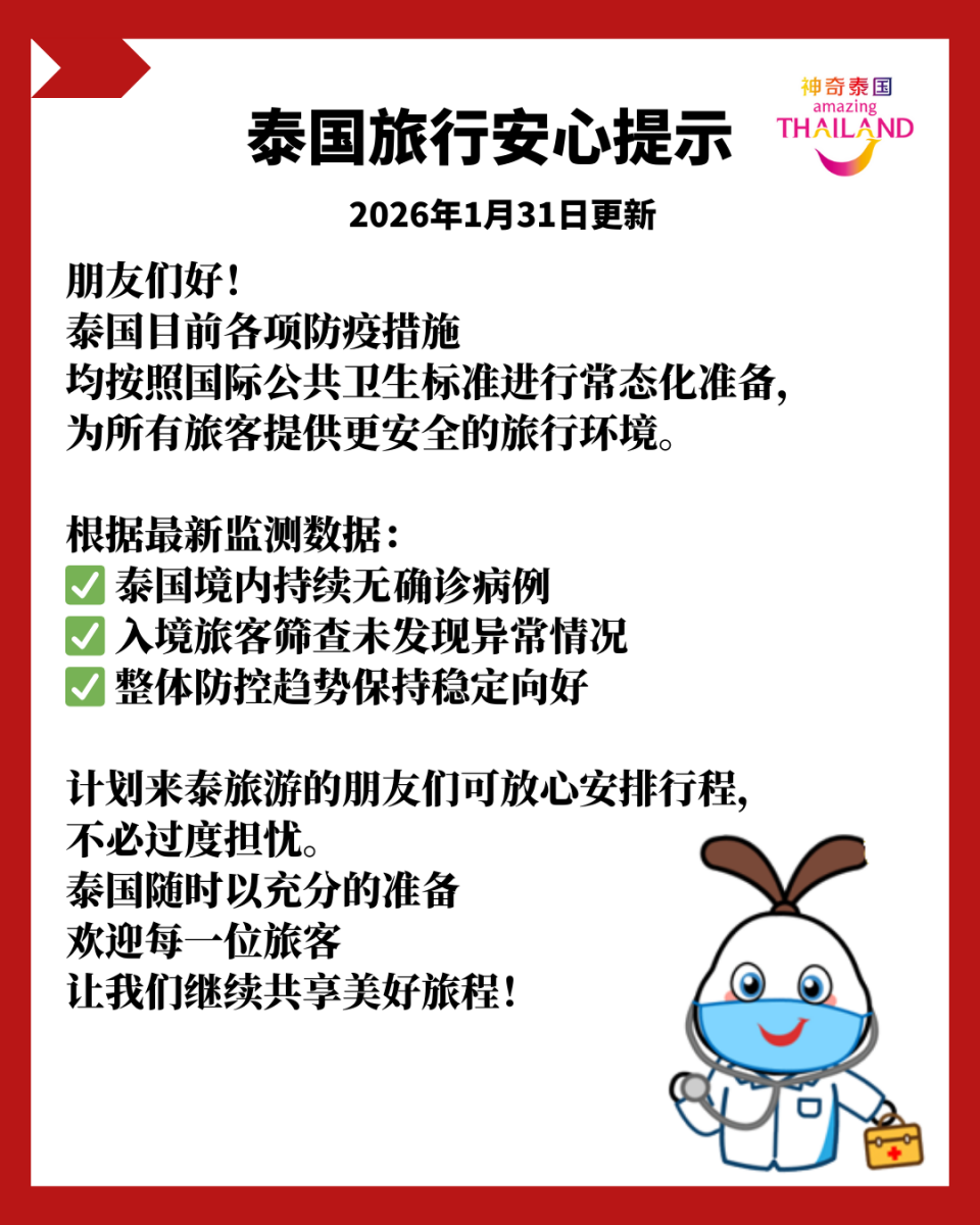 计划来泰旅游的朋友们可放心安排行程,不必过度担忧。