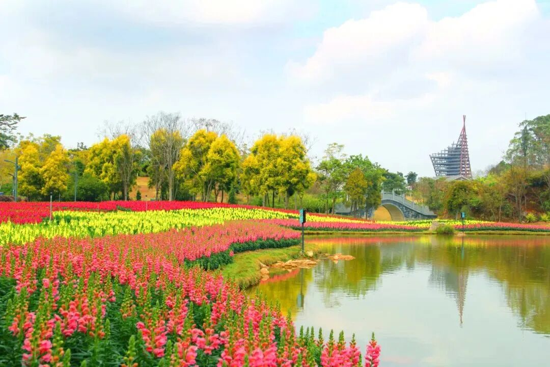 南宁园博园:赴一场国风与花的约会。桃花沿湖盛放,搭配苏州园、南京园等中式园林,营造出“园在花中,花在园里”的诗画意境 。金鱼草织就的斑斓花毯同样不可错过 。